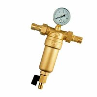 Фильтры самоочищающиеся Gappo обеспечивают защиту от механических примесей оборудования систем водоснабжения и отопления с максимальной рабочей температурой до 80 °C. Их применяют также на трубопроводах масел, жидких углеводородов, сжатого воздуха. Компактный фильтр Gappo механической очистки воды с возможностью удаления накопившихся загрязнений без извлечения сетчатых вставок (промывной фильтр). Оснащен фильтроэлементом из нержавеющей стали. Размер ячеек первичной сетки фильтроэлемента – 100мкм. Корпус и колба фильтра выполнены из латуни марки CW617N (европейский стандарт EN 12165). Предусмотрены дренажный шаровой кран со штуцером для подключения шланга и манометр для контроля уровня загрязненности сетки. Фильтр монтируется в вертикальном положении, колбой вниз. Резьба присоединений – внутренняя.