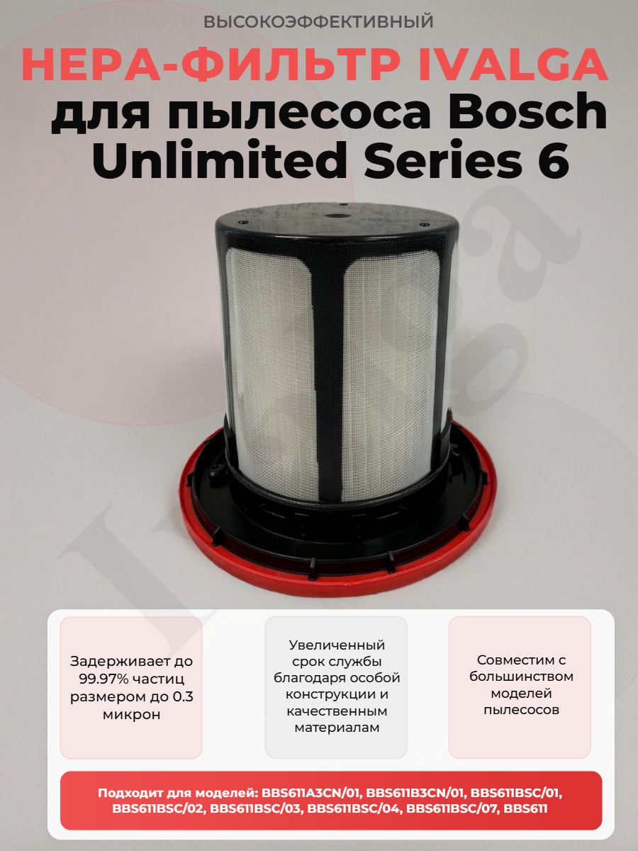 Фильтр контейнера для сбора пыли для аккумуляторных пылесосов Bosch Unlimited Serie|6. Высота: 93 мм. Внутренний диаметр отверстия фильтра: 25 мм.
