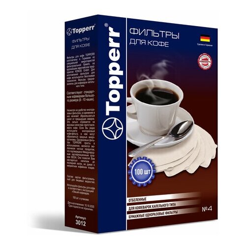Фильтр TOPPERR №4 для кофеварок, бумажный, отбеленный, 100 штук, 3012: сравнение цен, характеристики, фото, актуальное наличие и цены.