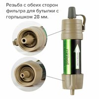 - Фильтр совместим с пластиковыми бутылками с горлышком диаметром 28мм (стандартная бутылка воды ёмкостью 0.5л).