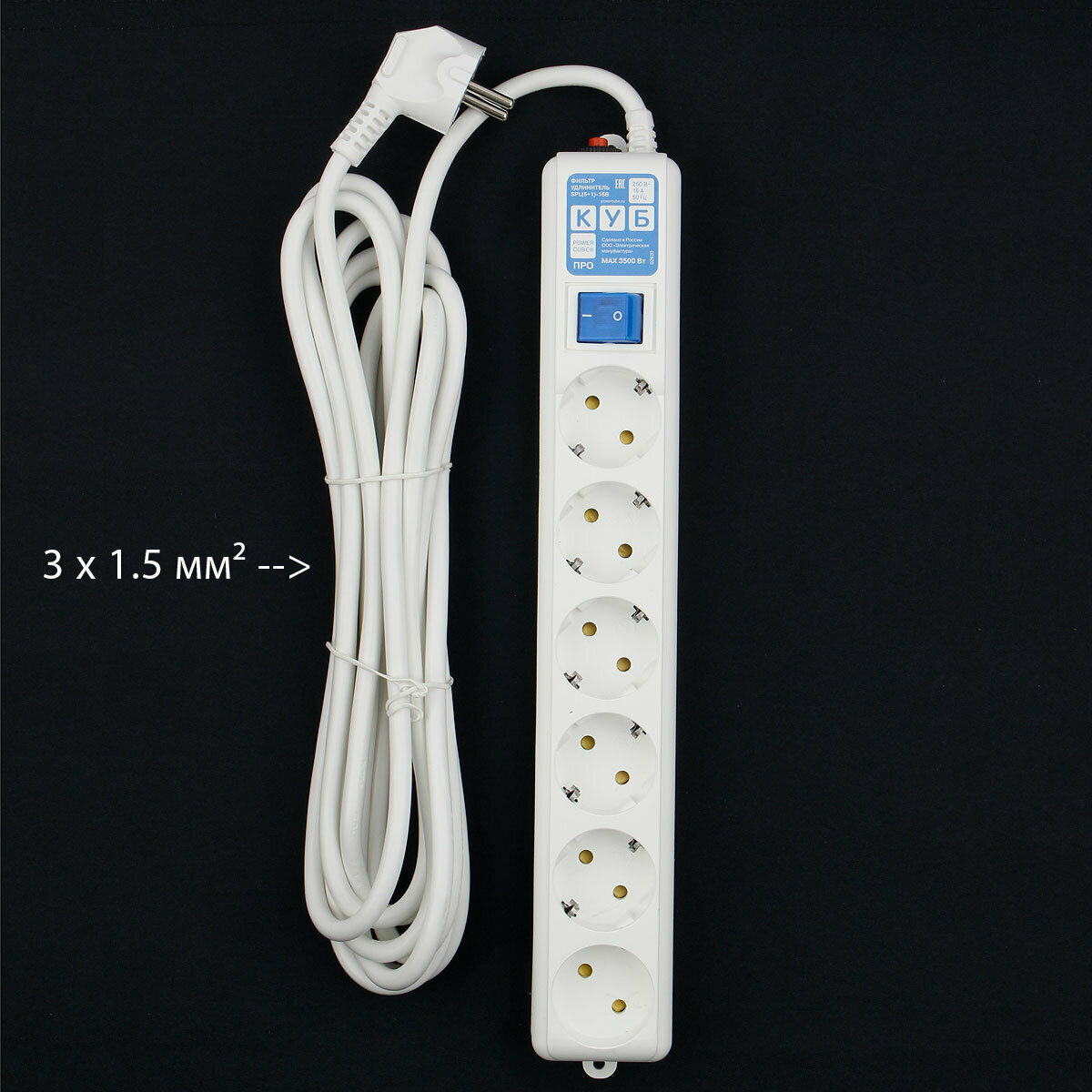 Купить Сетевой фильтр Power Cube PowerCube PRO 5м 6 розеток 16А (белый) с доставкой по всей России.