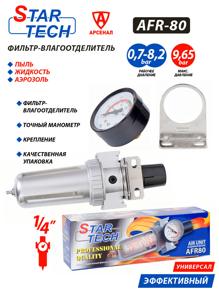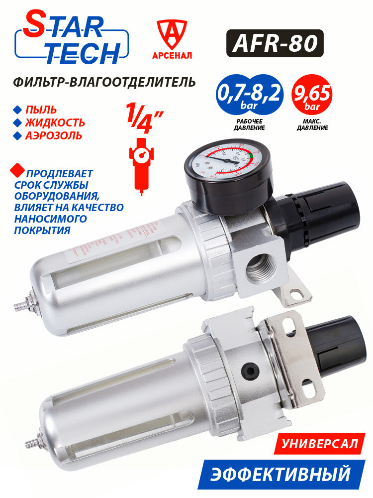 Влагоотделитель StarTech AFR80 с манометром и редуктором: сравнение цен, характеристики, фото, актуальное наличие и цены.