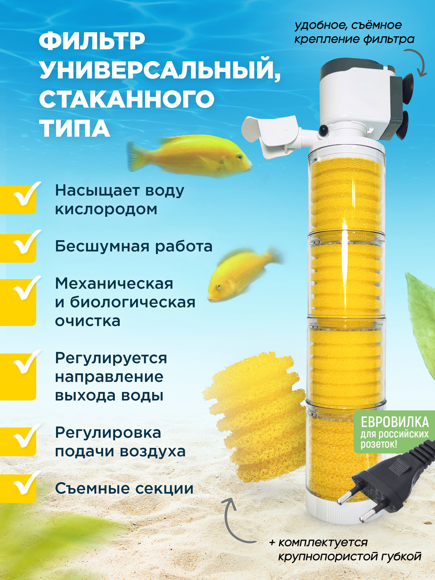 ✓ В комплекте идут мелкопористые губки, фильтрующие + крупнопористая губка, благодаря крупным порам губка очень медленно забивается, обеспечивая долговременную чистоту воды в аквариуме. Очистка воды происходит за счет этапной отчистки, проходя через несколько стаканов с разной плотностью фильтрующих губок.