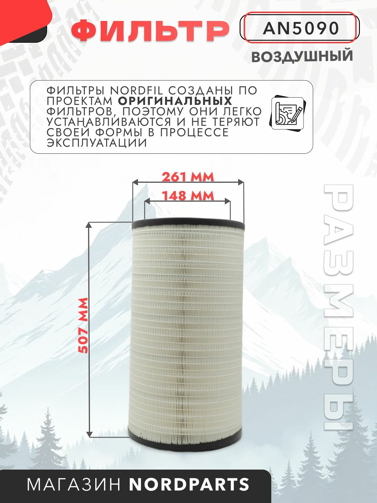 Купить Фильтр воздушный DAF TRUCKS XF105, DAF TRUCKS XF (XF106) Nordfil арт. AN5090 OEM 1854407 с доставкой по всей России.