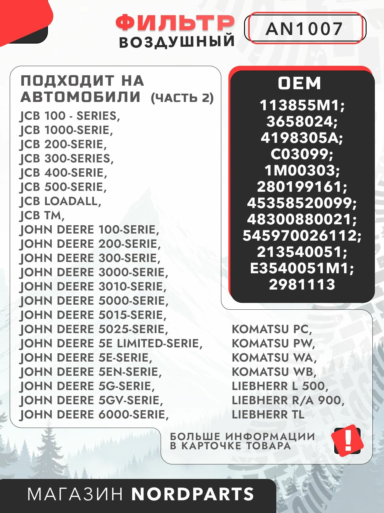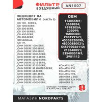 Фильтр воздушный внешний IVECO Daily III-IV, JOHN DEERE, KOMATSU, CATERPILLAR, HITACHI Nordfil арт. AN1007 OEM 090003010: сравнение цен, характеристики, фото, актуальное наличие и цены.
