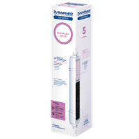 Сменный картридж для обратноосмотического фильтра под мойку. Предназначен для установки в 5-ю ступень обратноосмотической системы Профи Осмо 100. Минерализатор Барьер также совместим с обратноосмотическими системами других производителей, однако требуются соединительные фитинги. Фильтроэлемент не только очищает воду, но и насыщает ее полезными минералами – кальцием, магнием и фтором. Минеральные компоненты равномерно выделяются в воду на протяжении всего ресурса. Ресурс 1000 литров. Минерализатор обогащает очищенную воду Ca, Mg, F до физиологической нормы. Микроэлементы выделяются в ионной форме, что улучшает их усваиваемость организмом. Магний – макроэлемент, обеспечивающий хорошее самочувствие, уменьшение стресса, корректную работу мышц. Он поддерживает иммунную и нервную систему организма, замедляет процессы старения. Регулярное потребление данного элемента позволяет улучшить и стабилизировать сон, снизить вероятность сердечно-сосудистых заболеваний и поддержать жизненный тонус. Он участвует в более чем 300 биохимических процессах, придавая нам силу и устойчивость к нагрузкам. Кальций является минералом, который необходим организму для выполнения многих функций, включая построение и поддержание костей и зубов, свертывание крови, передачу нервных импульсов и регуляцию сердечного ритма. Его недостаток может стать причиной многих серьезных проблем и отразиться самым негативным образом, прежде всего, на состоянии костей и зубов. Также стоит отметить, что у людей, ведущих активный образ жизни, расход кальция увеличивается, поэтому его запасы необходимо пополнять в большей мере. Фтор является активным в биологическом отношении микроэлементом. Он крайне важен для поддержания иммунитета, принимает активное участие в процессах кроветворения. Также, данный элемент необходим для поддержания здоровья волос и ногтей. Фтор способен стимулировать заживление ран и улучшать усвоение железа. У фтора грань между «мало» и «много» особенно узка, поэтому фторирующий компонент работает только при пониженном содержании фтора в воде – начинает растворяться и обогащать воду до гигиенической нормы.