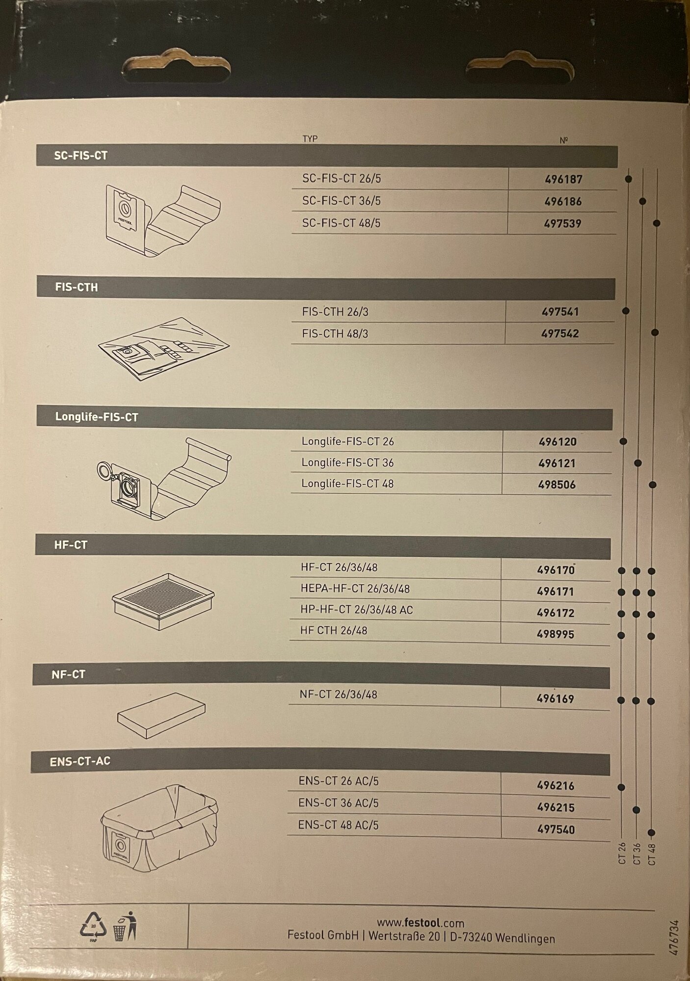 Фильтрующий элемент Festool HF-CT 26/36/48 HP: сравнение цен, характеристики, фото, актуальное наличие и цены.
