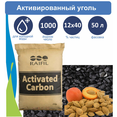 Raifil 12x40 активированный уголь на основе скорлупы кокосовых орехов. Большая площадь поверхности обеспечивает отличную адсорбцию органических соединений и эффективное удаление озона и хлора из воды. Улучшает органолептические свойства воды: вкус, цвет, запах.