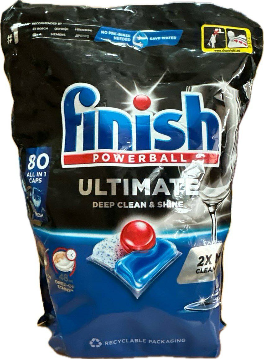 Капсулы для мытья посуды в ПММ, средство для посудомоечной машины Finish Ultimate, 80 шт, для превосходного очищения и безупречного блеска вашей посуды. Обеспечивают защиту и заботу о материале. Не содержат фосфаты. Технология ACTIVELIFT эффективно справляется с засохшими загрязнениями даже спустя 24 часа без предварительного замачивания. Каждая капсула состоит из трех частей: порошок - удаляет сложные загрязнения, синий гель - нейтрализует жир, красный гель - придает ослепительный блеск. Более того, капсулы Finish Ultimate All in 1 защищают вашу стеклянную посуду и столовые приборы от помутнения, сохраняя их блеск после мытья. Для достижения максимального результата и при очень жесткой воде рекомендуем попробовать специальную соль и ополаскиватель Finish. Преимущества Финиш/Finish Ultimate: 1. Превосходное очищение, безупречный блеск, защита и забота о материале; 2. Эффективен даже без замачивания; 3. Справляется с засохшими загрязнениями спустя 24 часа; 4. Капсула в 100% водорастворимой биоразлагаемой оболочке; 5. Рекомендовано ведущими производителями посудомоечных машин. Правила использования: 1. Не трогайте капсулу мокрыми руками. 2. Не разламывайте. 3. Не снимайте оболочку с капсулы, она полностью растворяется в процессе мойки. 4. Поместите 1 капсулу в сухой отсек на 1 цикл мойки. 5. Не кладите капсулу в корзину для столовых приборов. 6. Для наилучшего результата используйте режим «эко» или «авто». Меры предосторожности: Хранить в недоступном для детей месте! Содержит субтилизин. Может вызывать аллергические реакции. Может причинить вред при проглатывании. При попадании на кожу вызывает раздражение. При попадании в глаза вызывает выраженное раздражение. Вредно для водных организмов. При попадании В глаза: осторожно промыть водой в течение нескольких минут. Снять контактные линзы, если Вы ими пользуетесь и если это легко сделать. Продолжить промывание глаз. Если раздражение глаз не проходит, обратиться к врачу, взяв с собой упаковку продукта или этикетку. Не глотать! При проглатывании обратиться к врачу. Не вызывать рвоту, если это не рекомендовано врачом. При попадании в полость рта, прополоскать рот большим количеством воды, обеспечить доступ свежего воздуха. При попадании на кожу: промыть большим количеством воды. теги: теги: Финиш, Ультимейт, Ультимэйт, таблетки для посудомоечной машины, капсулы для посудомоечной машины, капсулы для посудомойки, капсулы для пмм, таблетки для посудомойки, средство для посудомоечной машины, таблетки для пмм, для, для посодомойки, для машинки, посудомоечные таблетки, капсулы для посудомойки, средства для пмм, для, для пмм, для блеска, для посуды, для чистоты, от грязи, от жира, капсулы для пмм. Состав: 15 % или более, но менее 30%: неионогенные ПАВ; 5 % или более, но менее 15%: отбеливающие вещества на основе кислорода, поликарбоксилаты, фосфонаты; энзимы, цеолиты, ароматизирующие добавки, в т. ч. бензилбензоат, гераниол. Комплектация: капсулы для посудомоечной машины 75 шт.