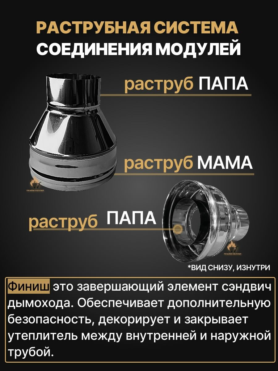 Финиш сэндвич для дымохода D 115×200 мм (0,5/430*0,5/430) нерж/нерж «Прок»: сравнение цен, характеристики, фото, актуальное наличие и цены.