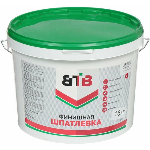 Шпатлевка финишная ВТВ, готовая, белоснежная, 16 кг – идеальное решение для внутренних работ по созданию идеально ровных стен и потолков перед покраской или поклейкой обоев. Готовая к применению финишная шпатлевка обеспечивает гладкую и прочную поверхность, отличается повышенной эластичностью и легкостью нанесения. Благодаря тонкодисперсному наполнителю и сметанообразной консистенции, материал хорошо распределяется, не стекает со шпателя и позволяет создать тонкий, равномерный слой без растрескиваний и усадки.