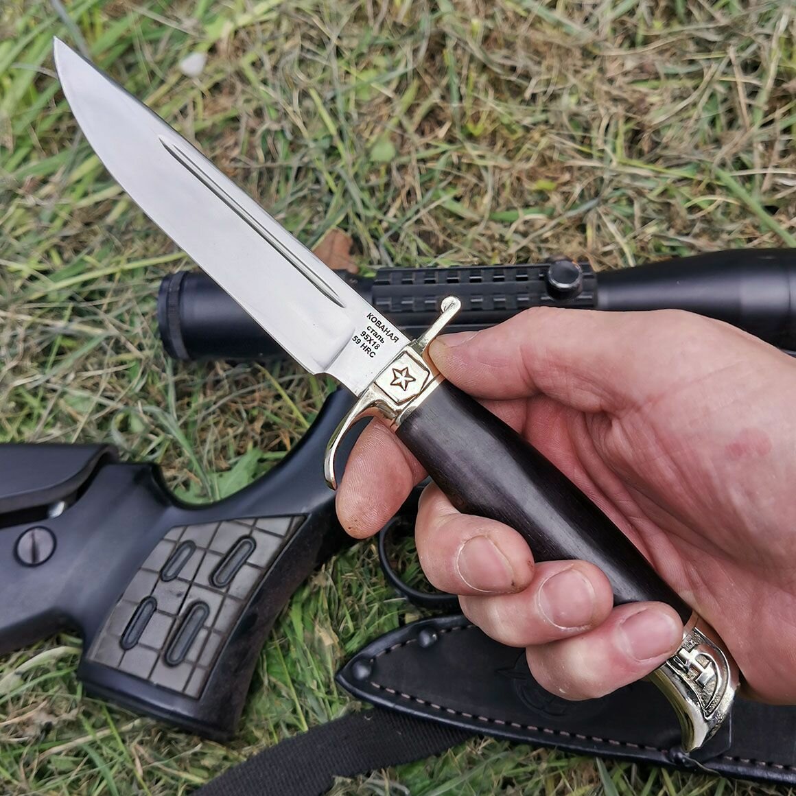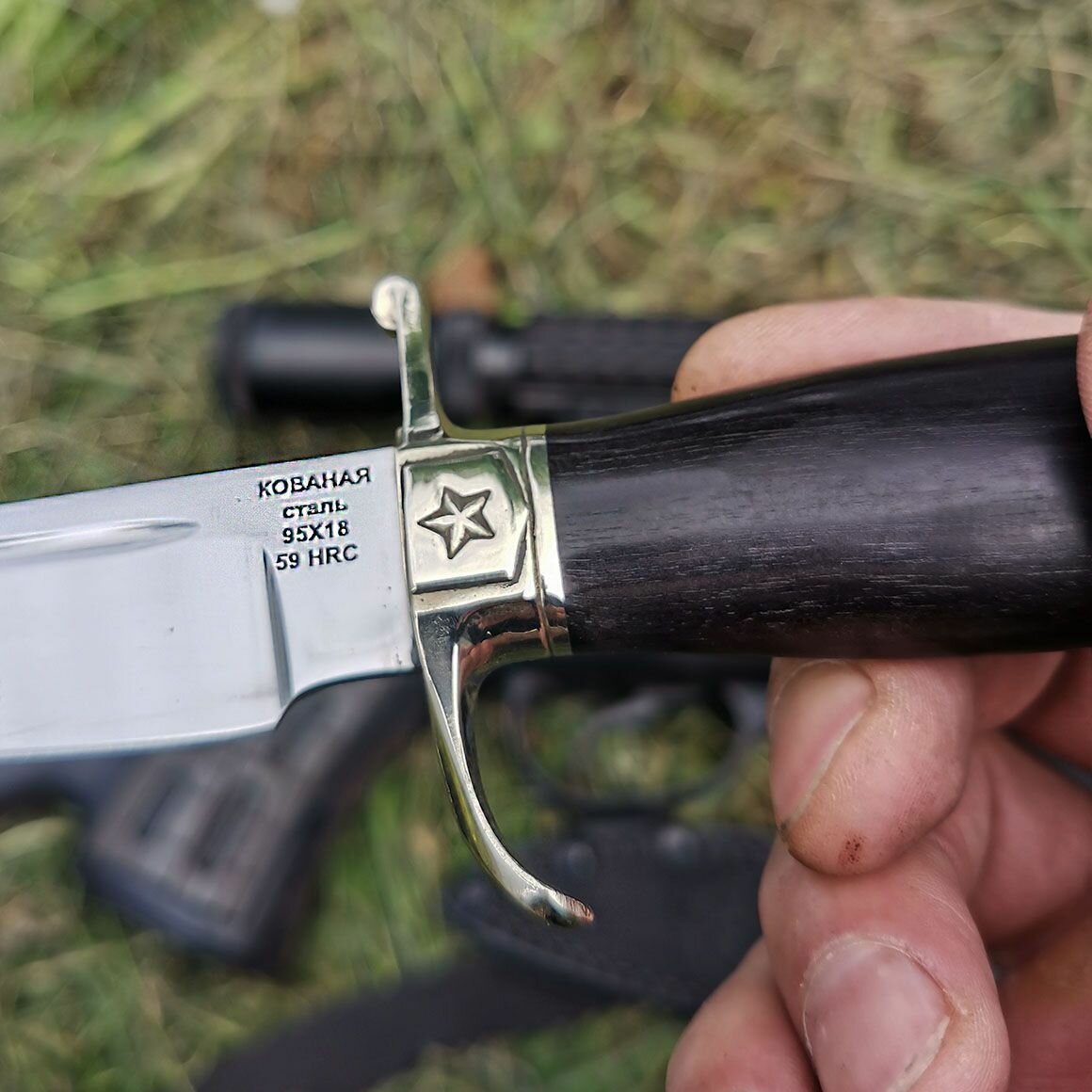 Финка НКВД из кованой стали 95Х18 с авторским литьём из мельхиора, рукоять граб: сравнение цен, характеристики, фото, актуальное наличие и цены.