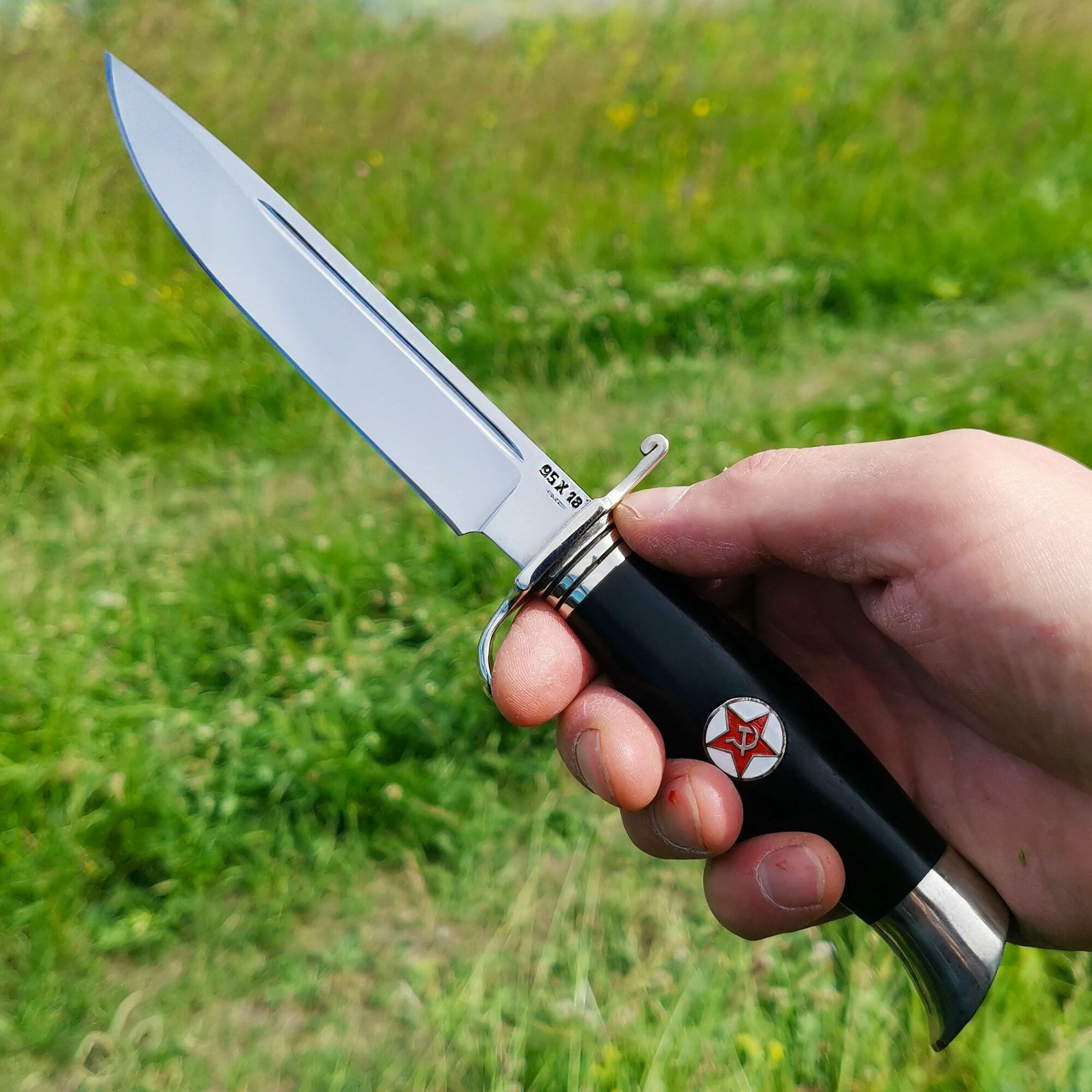 Финка НКВД из кованой стали 95Х18 с литьём из мельхиора, рукоять из граба со звёздами: сравнение цен, характеристики, фото, актуальное наличие и цены.