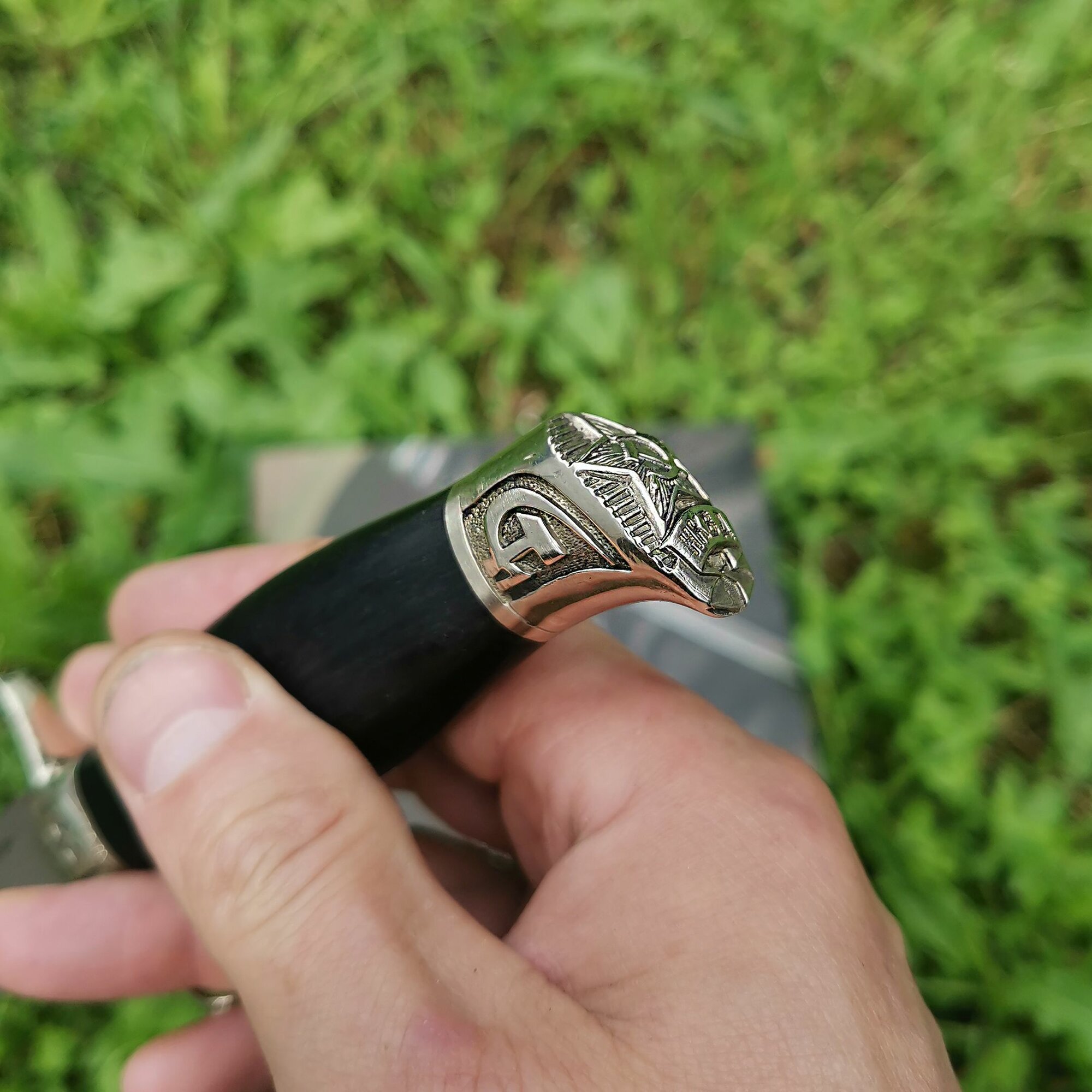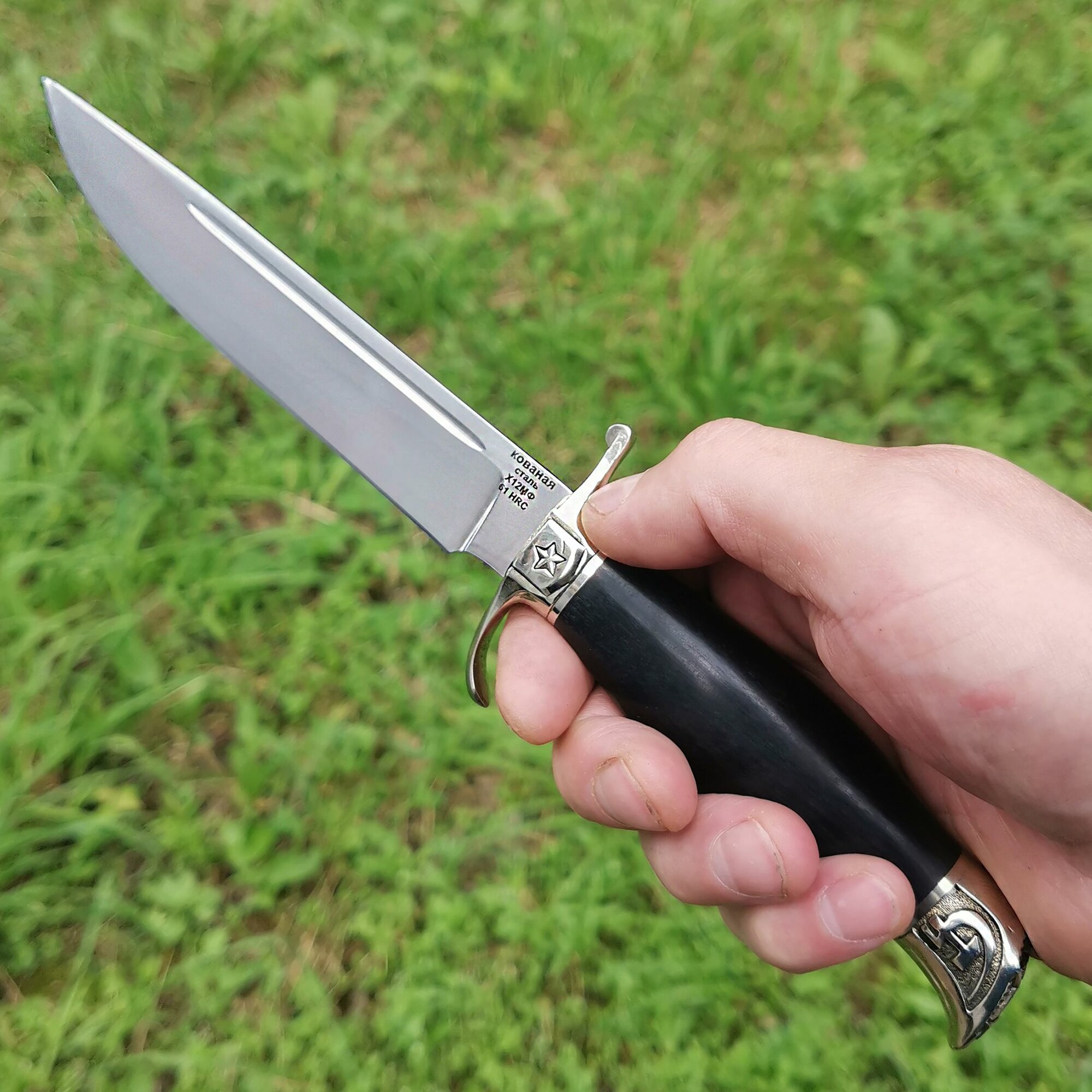 Купить Финка НКВД из кованой стали Х12МФ с авторским литьём из мельхиора, рукоять граб с доставкой по всей России.