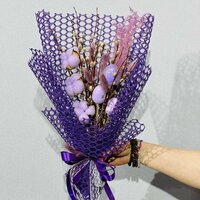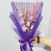 Фиолетовый букет из живой вербы с хлопком, 21 шт.