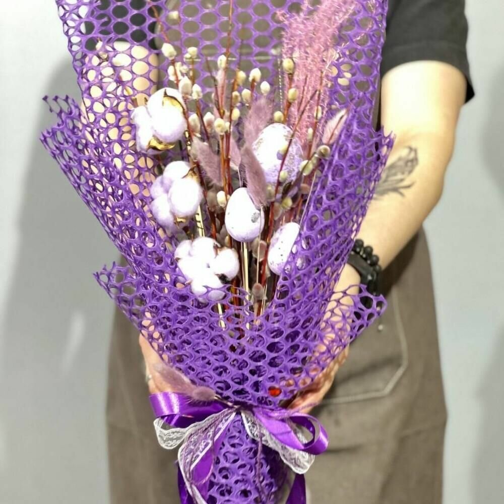 Фиолетовый букет из живой вербы с хлопком, 21 шт.: сравнение цен, характеристики, фото, актуальное наличие и цены.