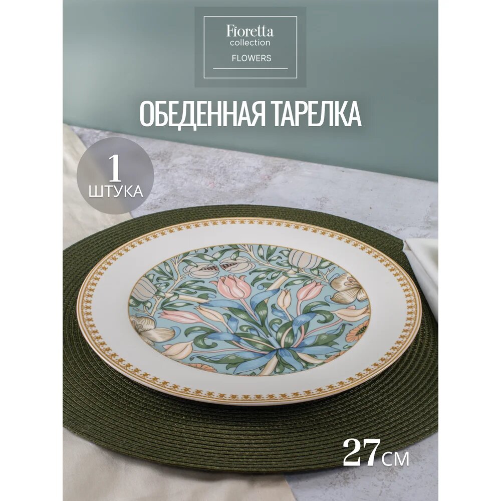 FIORETTA Тарелка обеденная FLOWERS 27см TDP580: сравнение цен, характеристики, фото, актуальное наличие и цены.