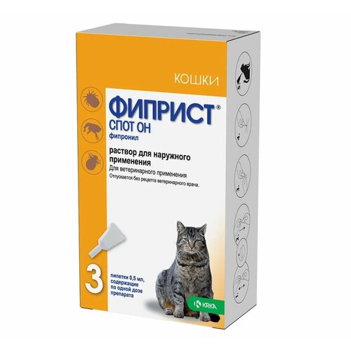 Купить Фиприст Спот-Он капли для кошек, упаковка 3 пипетки, KRКА (крка) с доставкой по всей России. Фиприст Спот-Он капли для кошек, упаковка 3 пипетки, KRКА (крка): сравнение цен, характеристики, фото, актуальное наличие и цены.