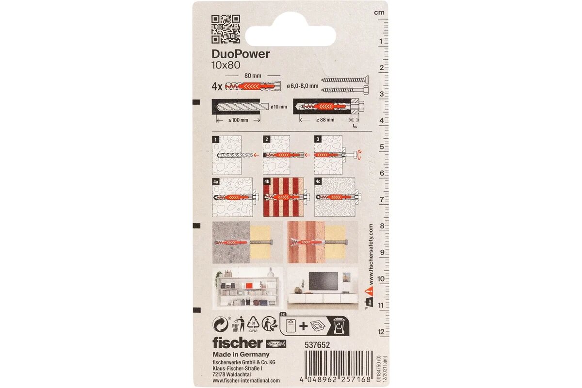 Fischer Дюбель 10×80 DUOPOWER_4ШТ 537652