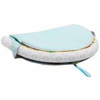 Коврик возможно использовать 2-мя способами. Поднимите дугу, положите малыша на спинку и он будет рассматривать и трогать ручками подвешенные игрушки. Если ребенок уже умеет держать голову и привставать на руках, то опустите дугу и положите малыша на животик. Он сможет изучать развивающие игрушки, лежа на животе.
