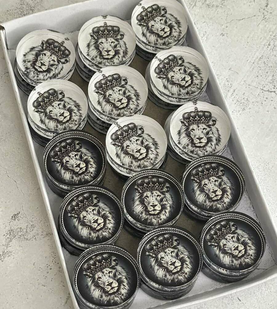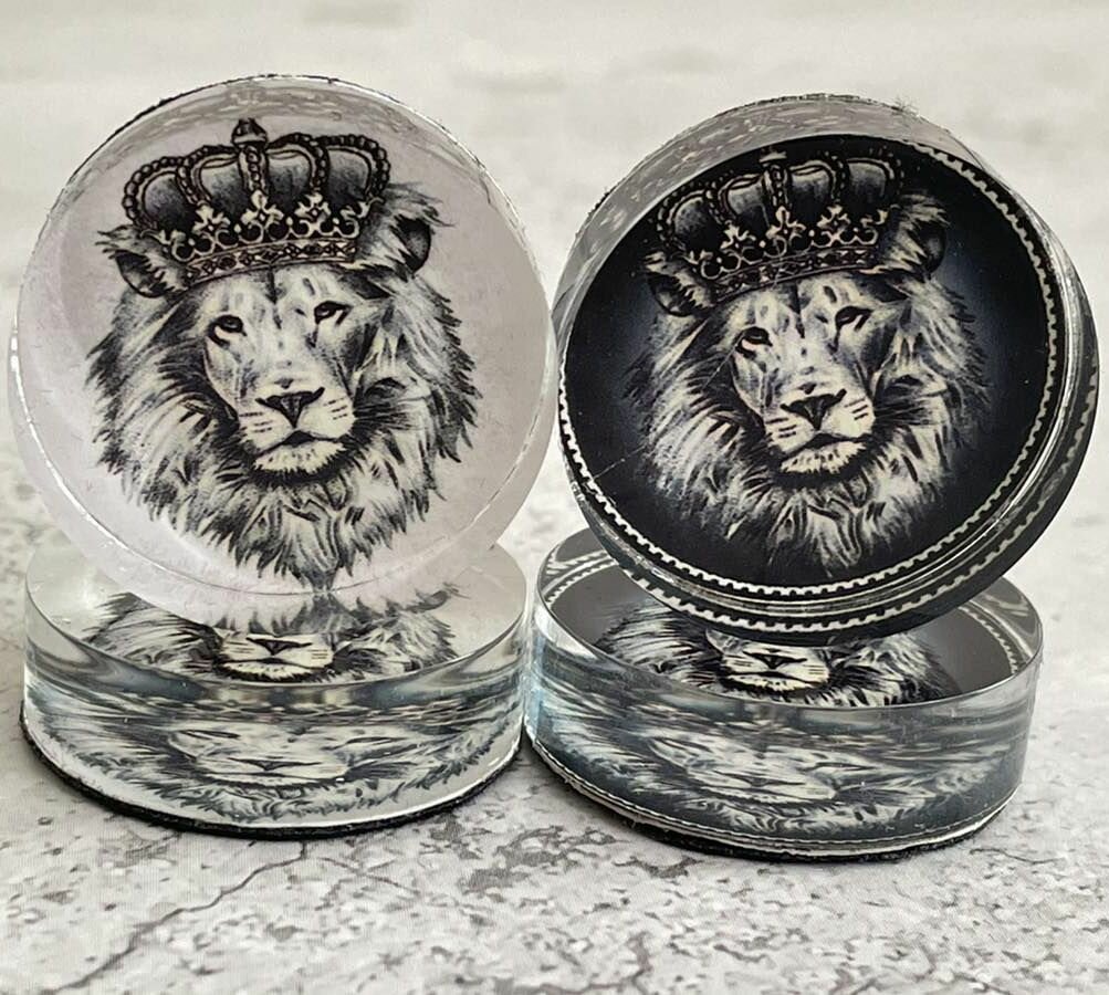Эксклюзивные авторские фишки для нард "Лев в Короне". Необычные, глянцевые, прозрачные, круглые фишки с рисунком внутри каждой фишки. Общее количество 30 штук: темных 15 штук и светлых 15 штук. Материал изготовления ударопрочное органическое стекло. Диаметр фишки 27 мм, высота 12 мм.