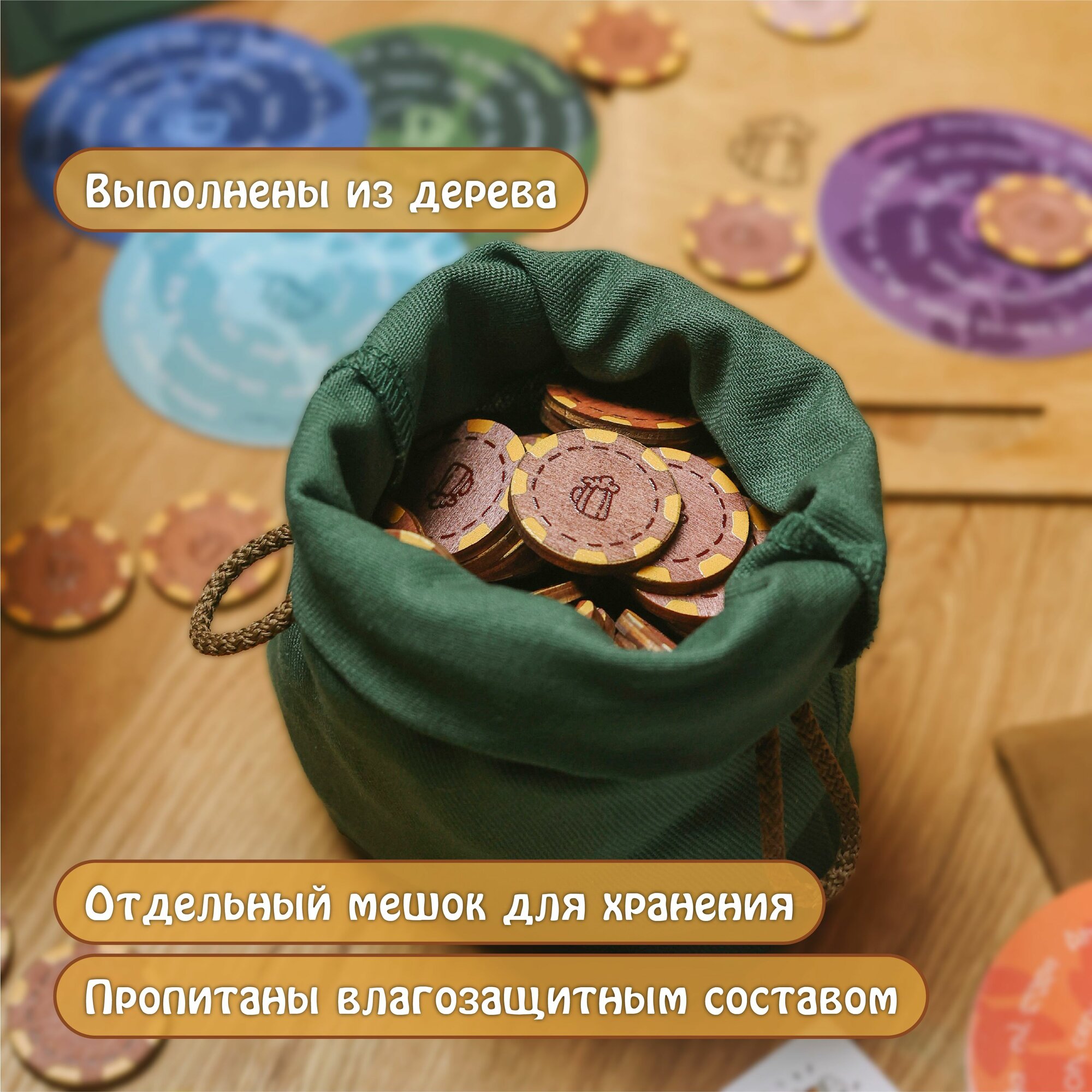 Станут потрясающим дополнением к вашей игре, если вы играете большой компанией или с фишками что-то случилось. Их приятно держать в руках, и они пахнут деревянными бочками!