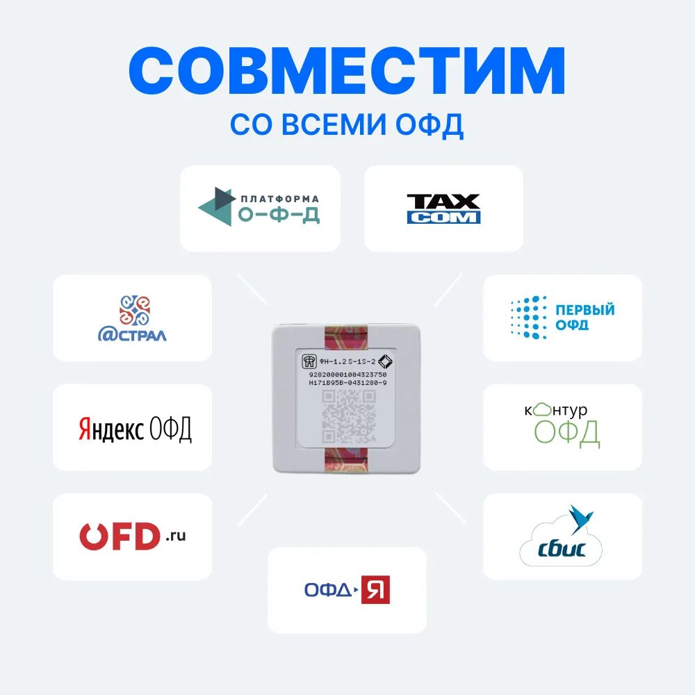 поддерживает форматы фискальных данных (ФФД) версии 1.05, 1.1, 1.2
