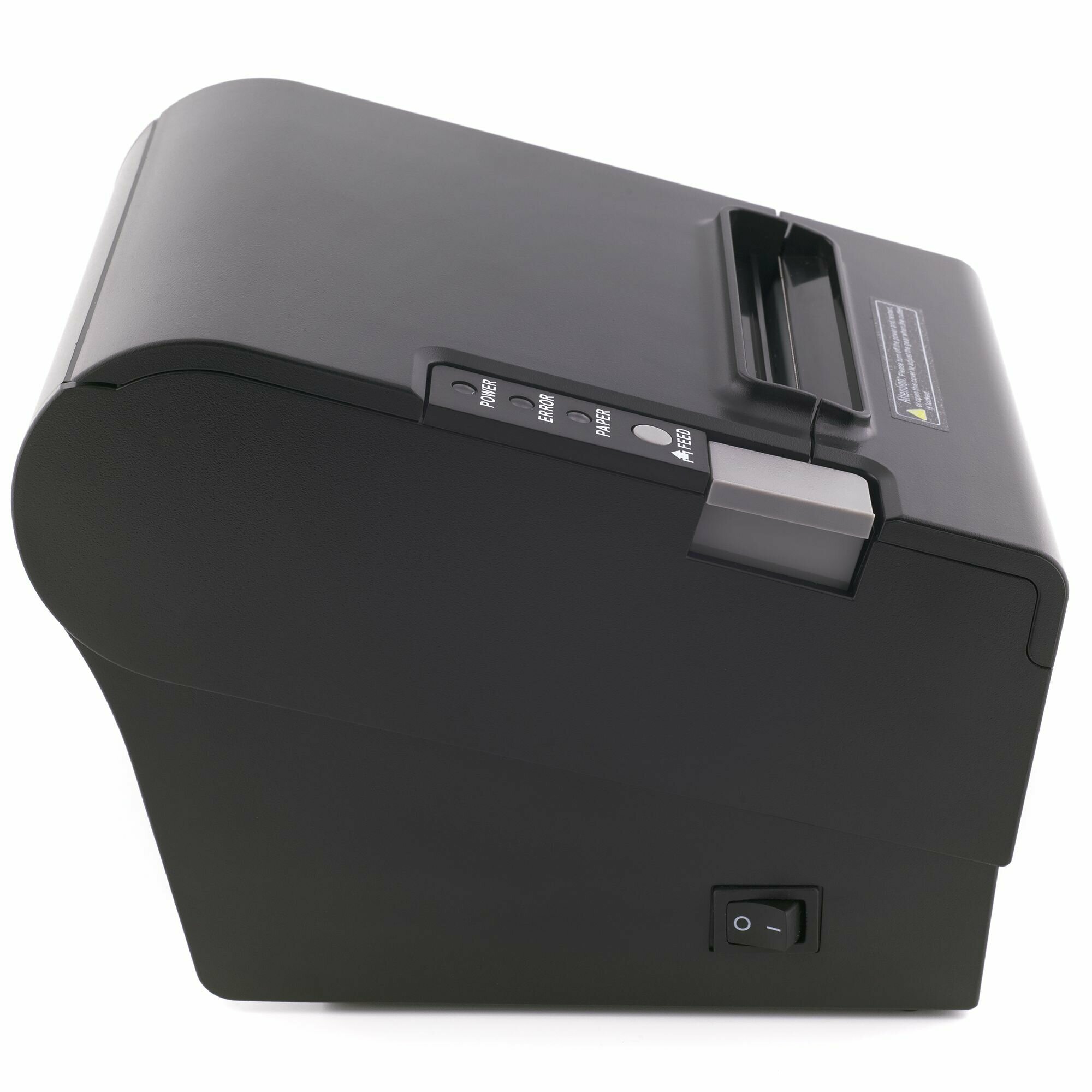 - достаточно редкая модель кассового аппарата, достоинства которой во многом остались недооцененными. Устройство выполнено в корпусе принтера чеков, который можно встретить во многих организация общественного питания, при этом сложно отличить этот регистратор от кассы. Тем не менее, по сравнению с другими моделями своей категории, которые оборудованы автоотрезчиком и могут печатать широкие чеки, Элвес-ФР-Ф самый доступный по цене. Массивный черный корпус модели с прорезиненными ножками отличается хорошей устойчивостью. Пластиковая крышка может замаскировать провод, подключаемый в задней части. Индикация и управление аппарата: кнопка протяжки ленты, индикаторы питания и ошибки, а также сигнальная лампочка об отсутствии бумаги. Печатает Элвес-ФР-Ф на скорости 200 мм в секунду, что очень быстро для устройств этого класса. Поддерживается большой диаметр рулона, поэтому ленты хватит надолго. Это не только сокращает расходы на обслуживание, но и не отвлекает кассира и не задерживает клиентов. Отрезчик чеков работает автоматически – он выполнен по гильотинному типу. Доступно отключение автоотрезчика или его работа в полуавтоматическом или ручном режиме – гребенка из металла позволяет быстро отрывать ленту, не сдвигая устройство с места. Блок питания стандартный – 24В, 2,5А, при этом есть дополнительная блокировка, чтобы не произошло случайного отсоединения. Элвес-ФР-Ф имеет COM-порт, USB разъем, а также специальные разъемы для подсоединения денежного ящика, подключения локальной сети. Wi-fi интегрирован на плату. Все интерфейсы настраиваются с программами кассира и ПО для отправки данных в ОФД.