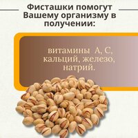 Фисташки жареные соленые - один из самых популярных перекусов. Отличительная черта фисташек - их щадящая термическая обработка. Большое содержание клетчатки позволяет обжаривать орехи быстро и с минимальным поглощением жиров. Фисташки жареные соленые считаются экологически чистым продуктом, поскольку технологии обработки фисташек не требует вмешательства посторонних ингредиентов. Фисташки являются удачно сбалансированным источников полезных веществ: витамины группы В (особенно редкий В6) микро- и макроэлементы (цинк, йод, фосфор, медь, калий ? Фисташки жареные с солью/ фисташки