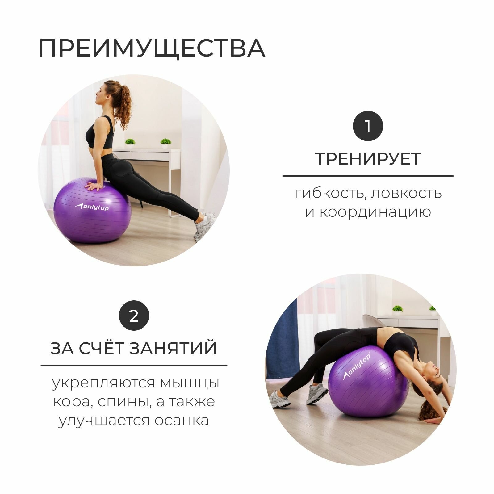 Фитбол ONLYTOP, диаметр75 см, 1000 г, антивзрыв, цвет фиолетовый: сравнение цен, характеристики, фото, актуальное наличие и цены.