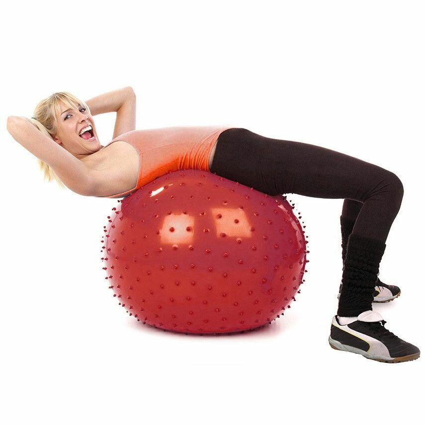 Полумассажный мяч заменяет два фитбола — с гладкой и массажной поверхностью. Поэтому, выбор остается за вами — нужна ли вам сегодня дополнительная проработка мышц или нет.