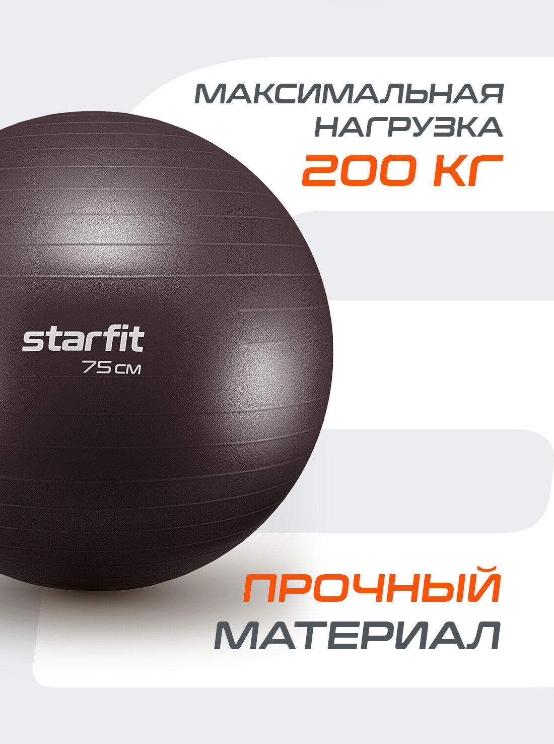 Фитбол STARFIT GB-111 75 см, 1200 гр, антивзрыв, с насосом, кофейный: сравнение цен, характеристики, фото, актуальное наличие и цены.