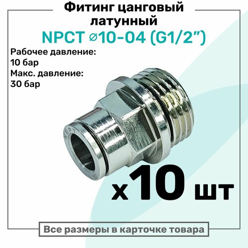 Фитинг прямой латунный NPCT 10-04, цанга 10мм — Наружная резьба G1/2″, цанговый штуцер, Пневмофитинг NBPT, Набор 10шт: сравнение цен, характеристики, фото, актуальное наличие и цены.
