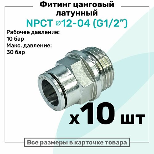 Фитинг прямой латунный NPCT 12-04, цанга 12мм — Наружная резьба G1/2″, цанговый штуцер, Пневмофитинг NBPT, Набор 10шт: сравнение цен, характеристики, фото, актуальное наличие и цены.
