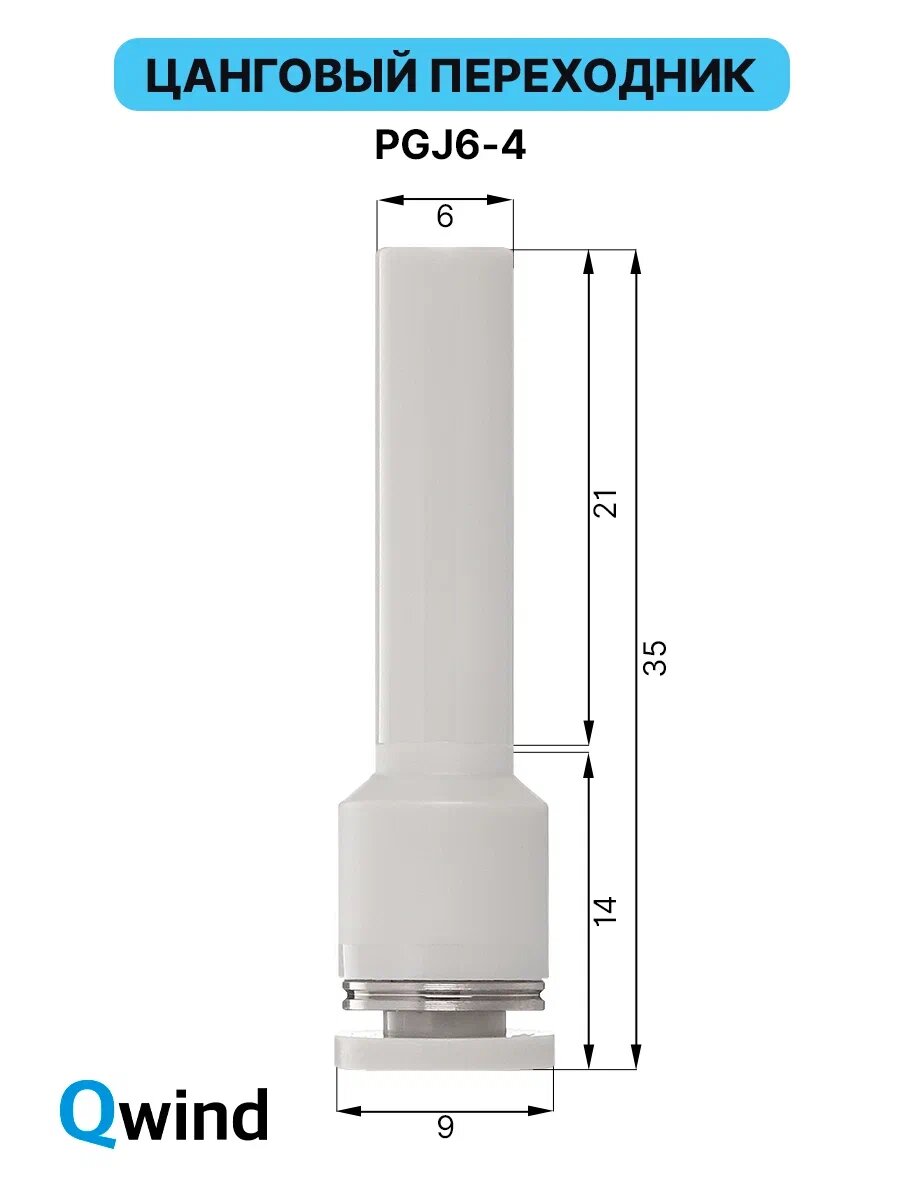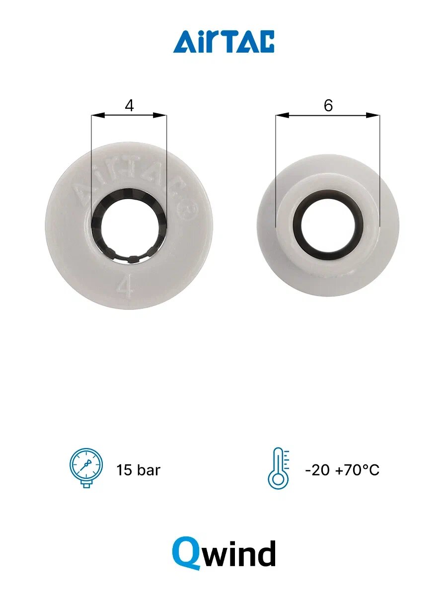 Фитинг пневматический переходник PGJ6-4 бренда Airtac используется для соединения пневмотрубок меньшего диаметра с фитингом большего диаметра.