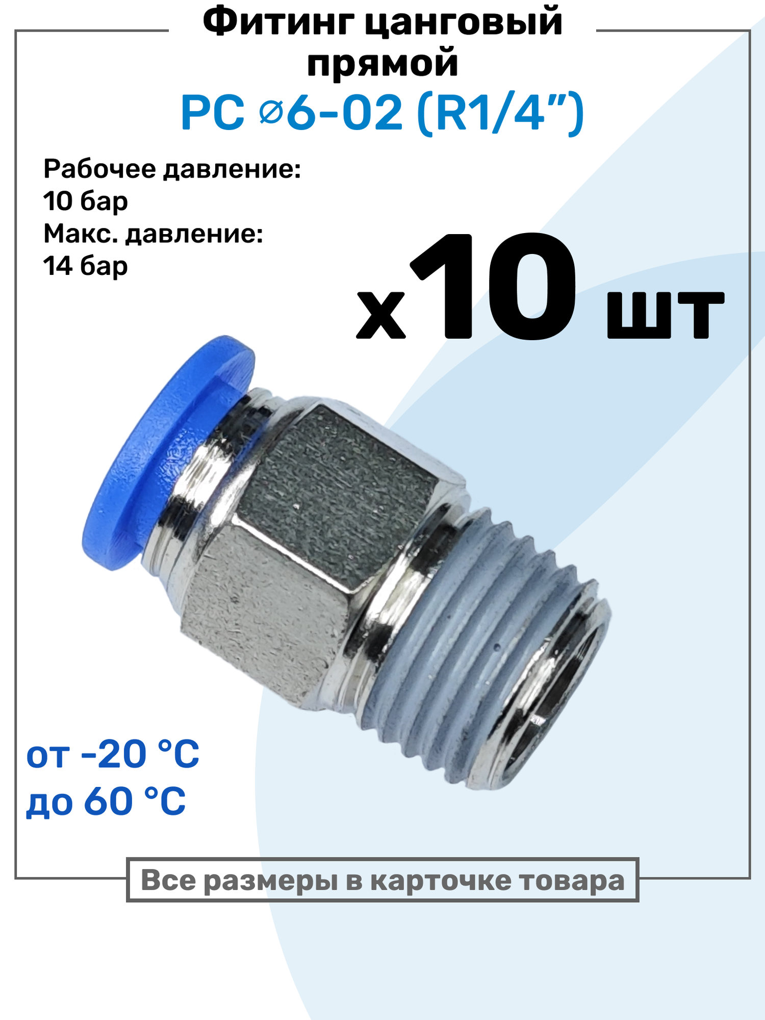 Купить Фитинг цанговый пневматический, штуцер прямой PC 06-02 , 6мм — Внешняя резьба R1/4″, Пневмофитинг NBPT, Набор 10шт с доставкой по всей России. Фитинг цанговый пневматический, штуцер прямой PC 06-02 , 6мм — Внешняя резьба R1/4″, Пневмофитинг NBPT, Набор 10шт: сравнение цен, характеристики, фото, актуальное наличие и цены.
