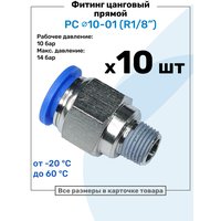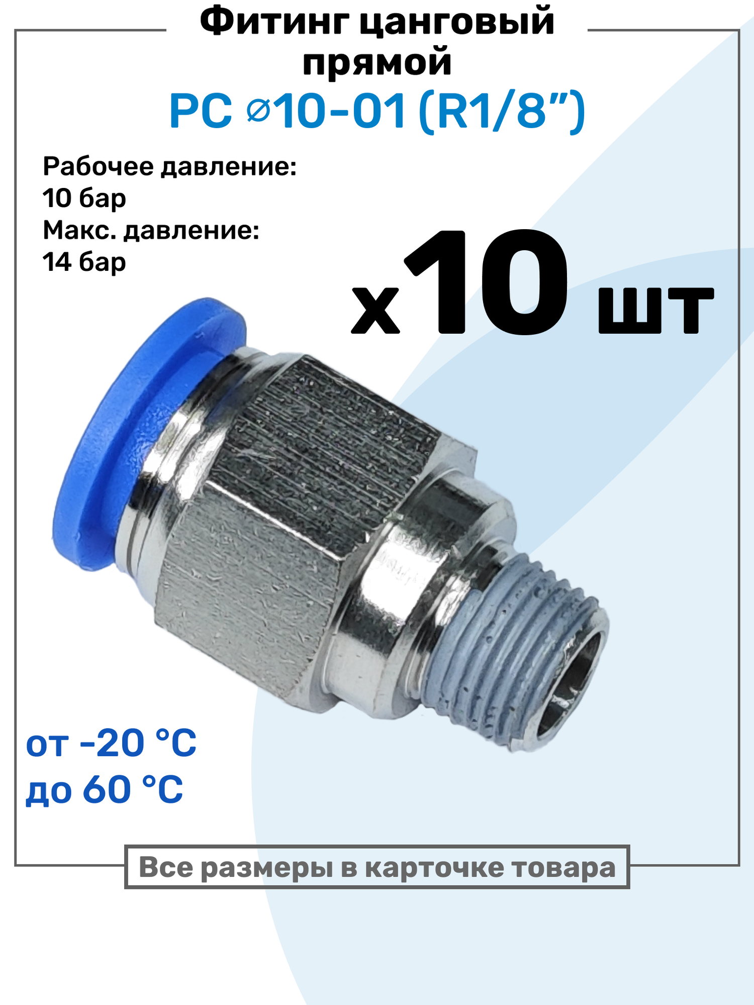 Фитинг цанговый пневматический, штуцер прямой PC 10-01 , 10мм — Внешняя резьба R1/8″, Пневмофитинг NBPT, Набор 10шт: сравнение цен, характеристики, фото, актуальное наличие и цены.