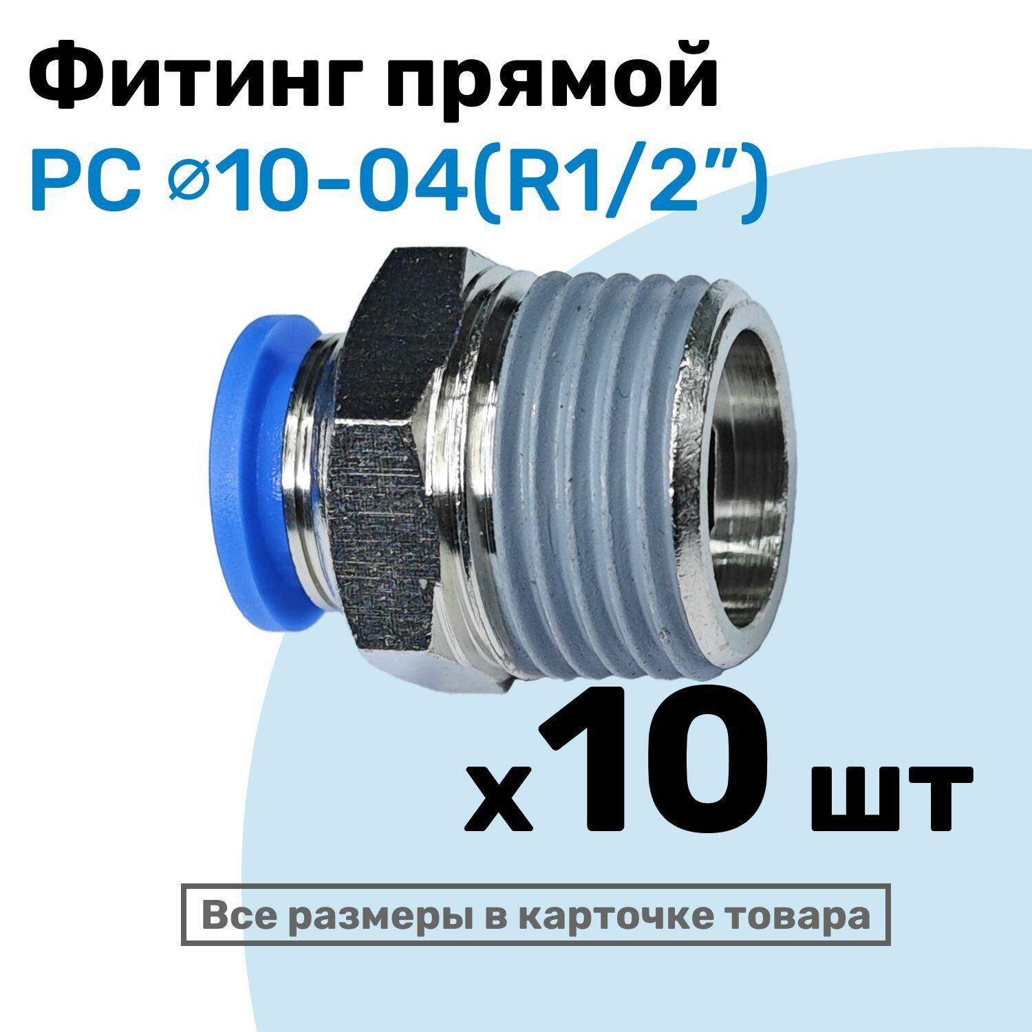 Купить Фитинг цанговый пневматический, штуцер прямой PC 10-04 , 10мм — Внешняя резьба R1/2″, Пневмофитинг NBPT, Набор 10шт с доставкой по всей России.