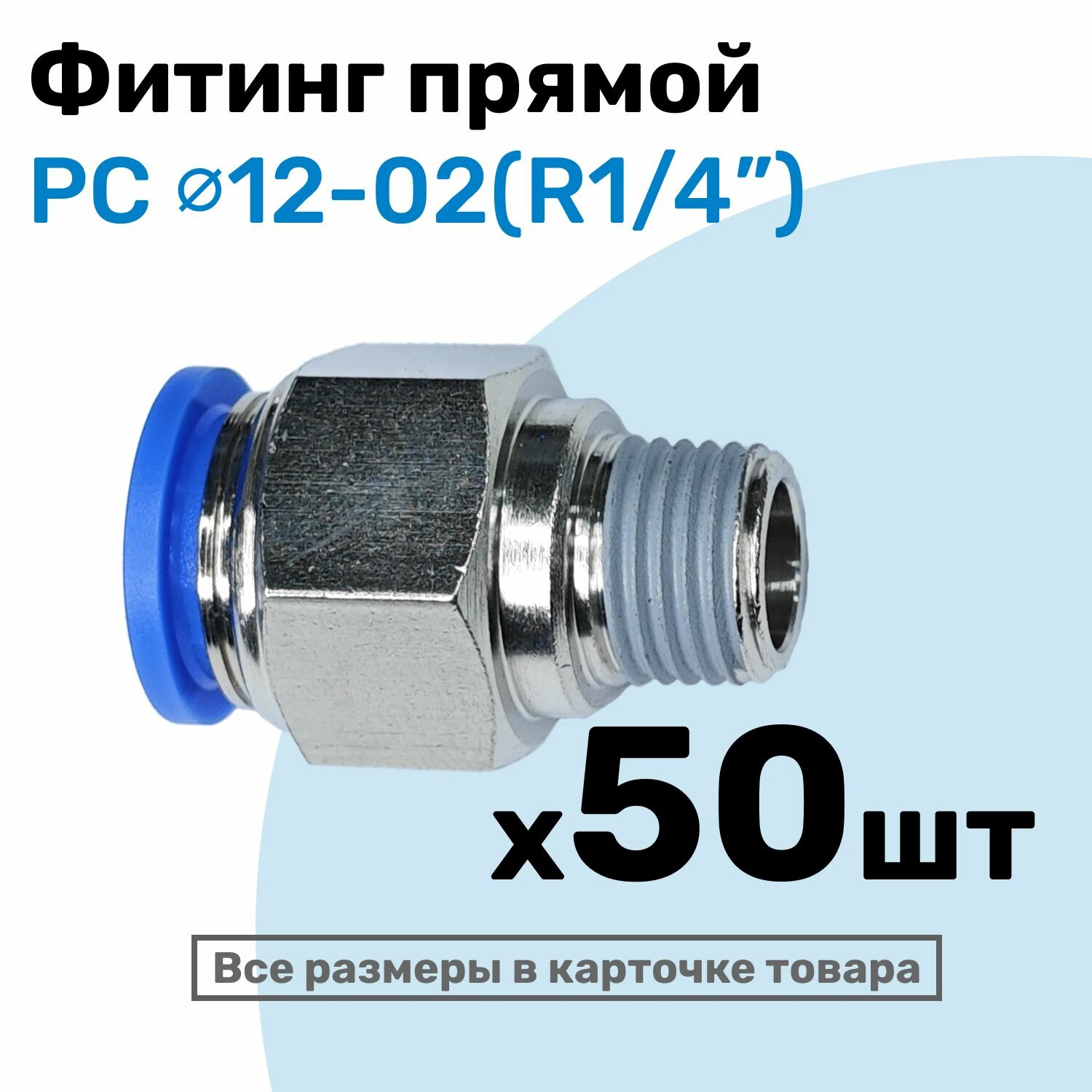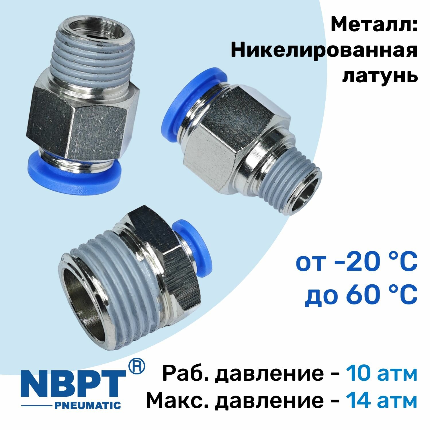 Купить Фитинг цанговый пневматический, штуцер прямой PC 12-02 , 12мм — Внешняя резьба R1/4″, Пневмофитинг NBPT, Набор 50шт с доставкой по всей России.