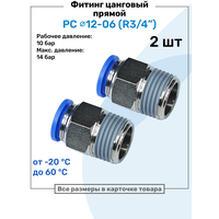 Фитинг цанговый пневматический, штуцер прямой PC 12-06 , 12мм — Внешняя резьба R3/4″, Пневмофитинг NBPT, Набор 2шт: сравнение цен, характеристики, фото, актуальное наличие и цены.