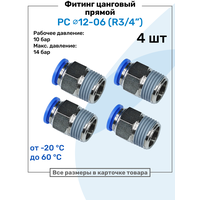 Фитинг цанговый пневматический, штуцер прямой PC 12-06 , 12мм — Внешняя резьба R3/4″, Пневмофитинг NBPT, Набор 4шт: сравнение цен, характеристики, фото, актуальное наличие и цены.