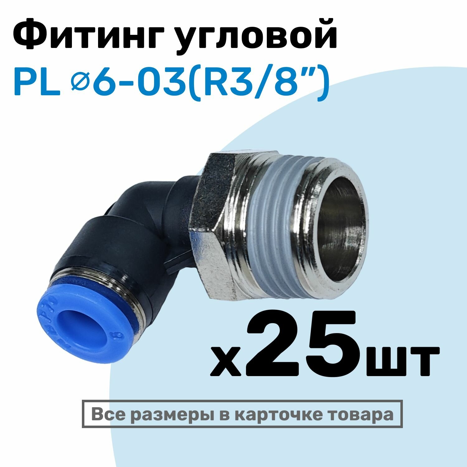 Фитинг цанговый пневматический, штуцер угловой PL 06-03 , 6мм — Внешняя резьба R3/8″, Пневмофитинг NBPT, Набор 25шт