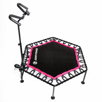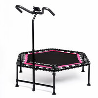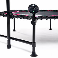 Батут джампинг имеет привлекательный черно-розовый дизайн, который будет выглядеть стильно в любом интерьере. Кроме того, батут оснащен держателем для телефона, что позволяет слушать музыку или смотреть тренировочные видео во время занятий.