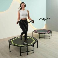 | Состав набора | -Цветная инструкция для сборки -Прыжковое полотно Permatron -Металлический каркас - 8 стальных опор (одна усиленная) -32 переплета из усиленного эластичного эспандера -Гаечный ключ, отвертка, приспособление для крепления переплетов -Регулируемая рукоятка с 3 уровнями -Держатель для телефона -Счетчик -Каркасный батут -Батут спортивный -Батут для дома и дачи -Фитнес батут |