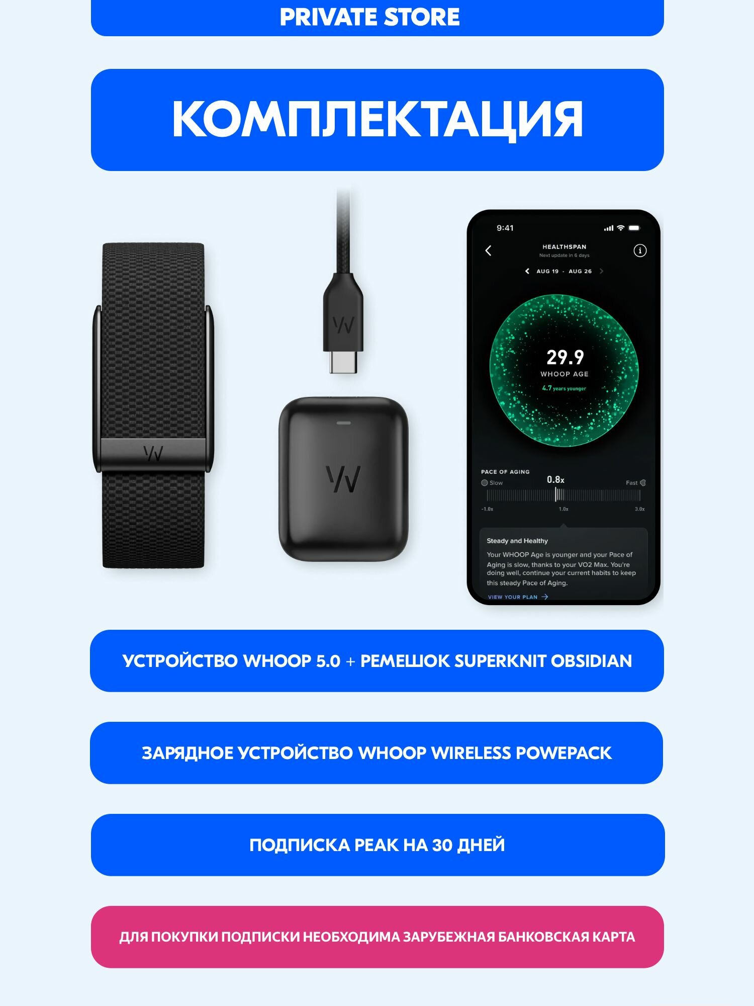 Купить Фитнес-браслет Whoop 5.0 (c ремешком SuperKnit Obsidian) + 30 дней подписки Peak с доставкой по всей России.
