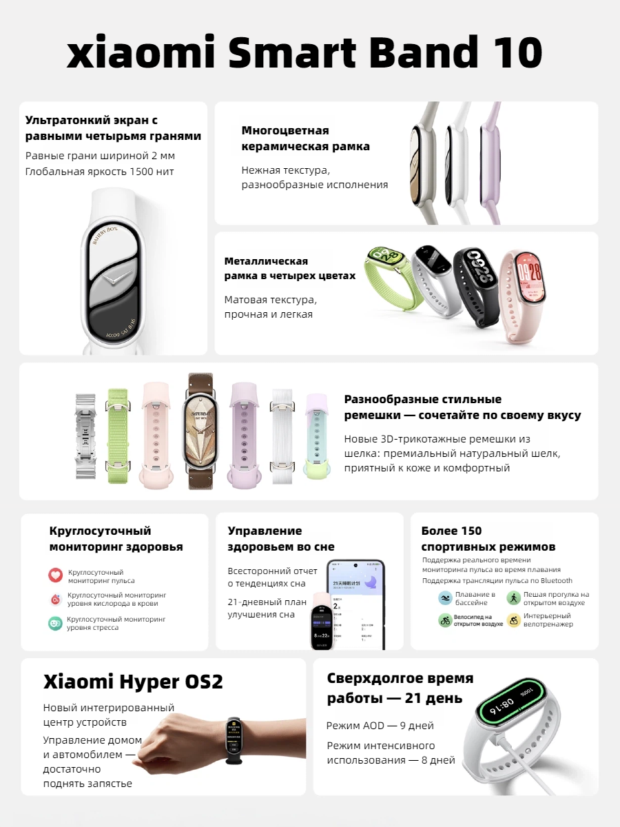 Фитнес-браслет Xiaomi Mi Smart Band 10, Midnight Black: сравнение цен, характеристики, фото, актуальное наличие и цены.