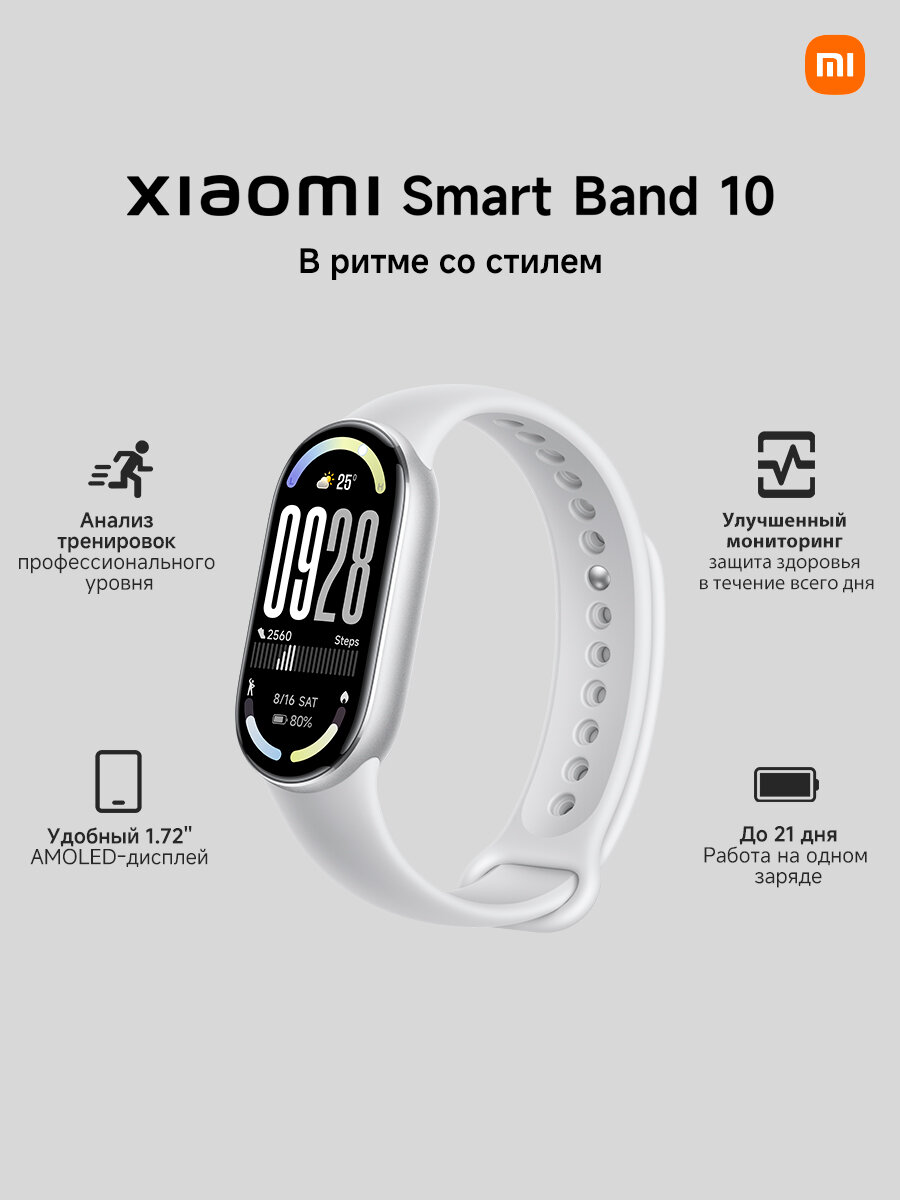 Купить Фитнес-браслет Xiaomi Smart Band 10 Glacier Silver BHR07PSGL с доставкой по всей России. Фитнес-браслет Xiaomi Smart Band 10 Glacier Silver BHR07PSGL: сравнение цен, характеристики, фото, актуальное наличие и цены.