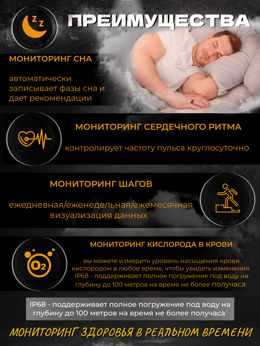 Новинка 2024 года - умное смарт кольцо! Фитнес браслеты и умные часы уже прошлый век. Девайс с легкостью заменит мужские, женские, детские браслеты различных моделей, фитнес и электронных устройств.