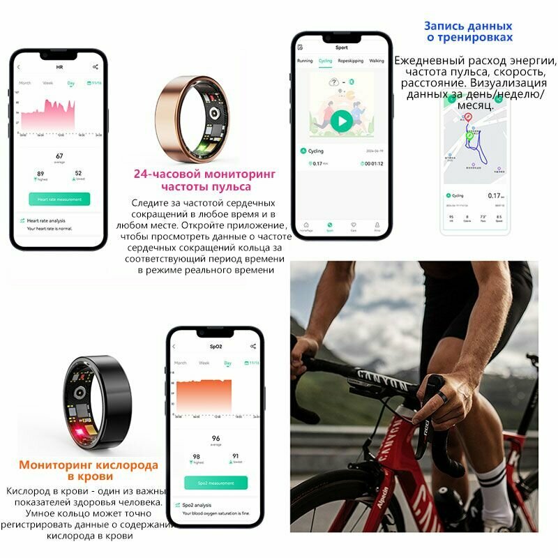 Фитнес смарт кольцо, пульсометр спортивный, на палец, с IOS и Android, Bluetooth, Несколько режимов упражнений: сравнение цен, характеристики, фото, актуальное наличие и цены.