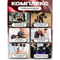 Гантели для силовых тренировок, для занятий спортом, кроссфитом, тяжелой атлетикой, для тренировок дома, незаменимый аксессуар при занятиях фитнесом и аэробикой. Оригинал, товар сертифицирован. В наше время спорт очень популярен и активный образ жизни. Тренировочный инвентарь идет в наборе - блины в общем весе 25кг (2 гантели по 12,5 кг). Гантели наборные регулируемые по весу, убирая или добавляя блины, вы можете получить разнообразные веса комбинируя их между собой. Набор легко модифицируются в тренировочные аксессуары: штангу с прямым грифом и W - образным грифом, а также в ролик для пресса. Гантели сборные - это многофункциональный набор, прекрасно подходит для упражнений на все группы мышц. Гантели разборные и штанга отлично подходят для прокачки рук, плеч, груди. Спортинвентарь позволит выполнять упражнение на верхнюю и нижнюю часть корпуса. Товары для фитнеса выполнены из высокопрочных материалов, гарантирующих удобство использования, долговечность и безопасность. Гриф - металл покрытый пластиком и резиной, имеет противоскользящие ручки, покрытие с защитой от пота, расширитель грифа, изготовлен из металла покрытый, покрытый пластиком, гриф W - образный - металл покрытый мягким материалом, с помощью двух дисков и грифа превращается в ролик для пресса, выдерживает до 200 кг. Материал: пластик, цемент, металл. Внутренний диаметр всех грифов 25 - 26 мм, под диски/блины с аналогичным диаметром. Sport fitness набор заменит тренажеры, можно проводить как взрослые, так и детские тренировки прямо у себя дома, ведь эксплуатация малых весов абсолютно безопасна для детей. Диски для гантели и грифа отдельно не продаются. Гантели разборные удобно использовать, как тренажеры и фитнес дома. Фитнес и спорт в домашних условиях эти гантели позволят это осуществить. Известные спортсмены выбирают данный набор ввиду своего вида и функционала. Это прекрасный подарок.